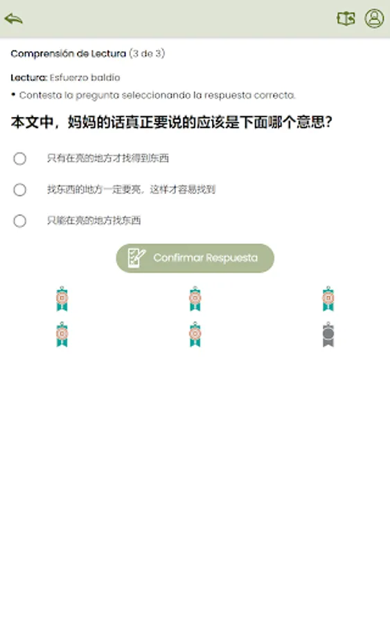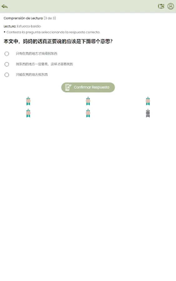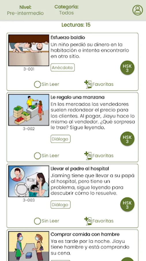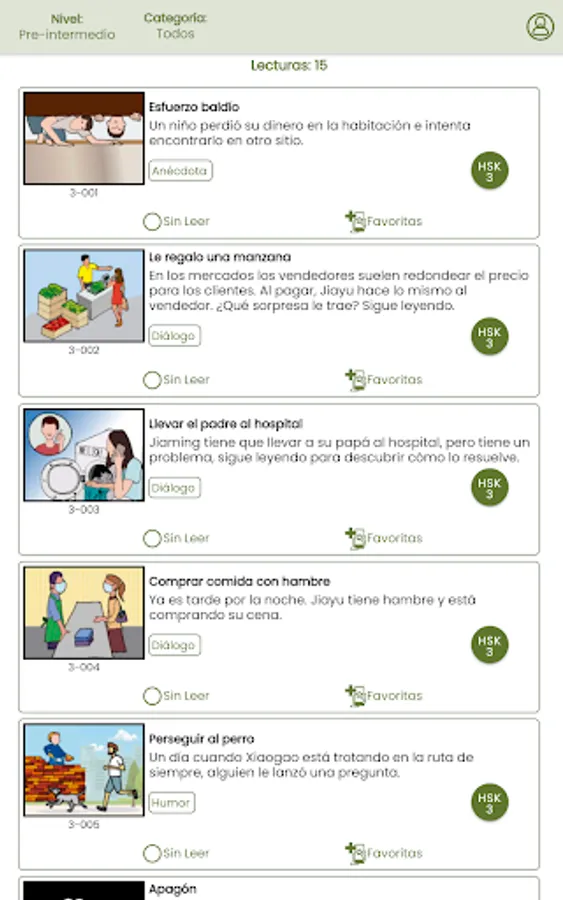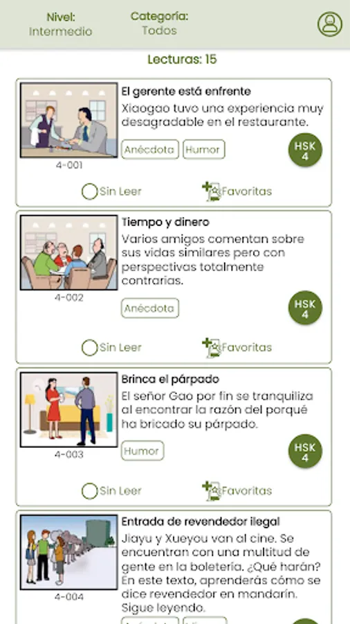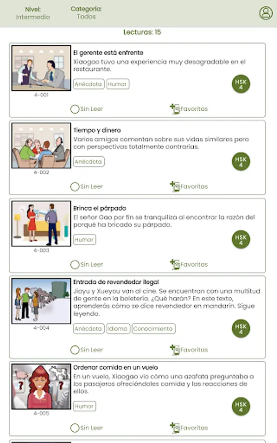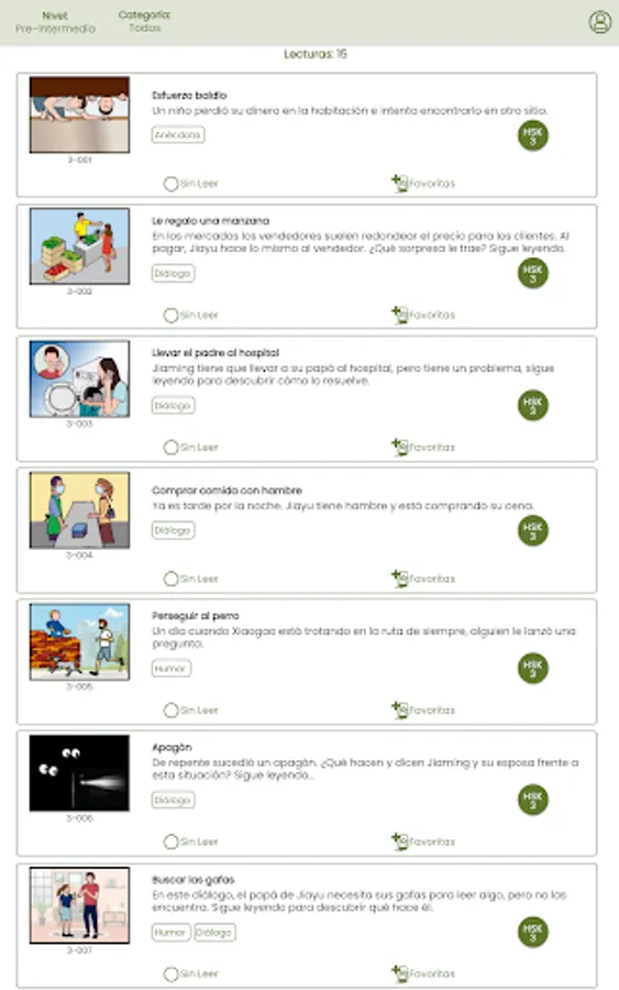 At the intermediate level, Chinohispano introduces students to readings that to a small extent incorporate new vocabulary and recursive use of words already learned, thus training students to comprehend longer readings and higher level of difficulty. .