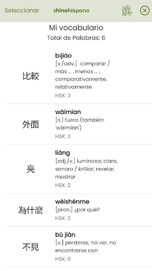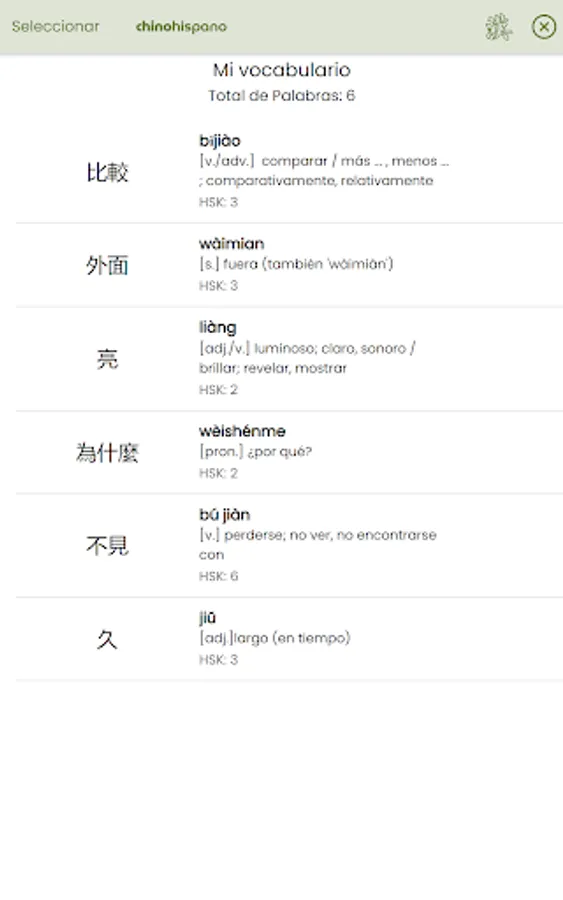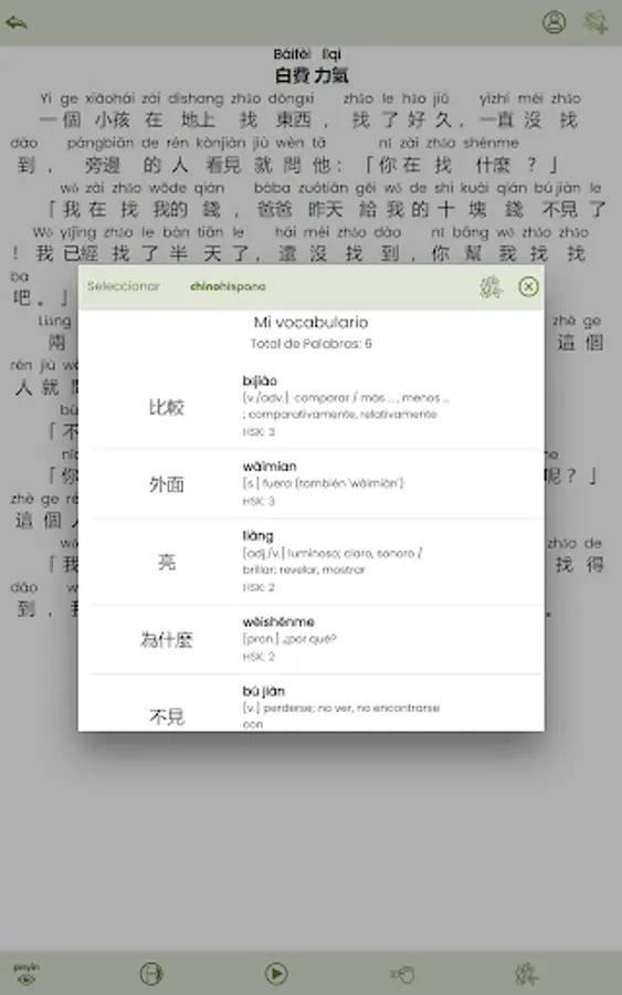 Chinohispano is an application with Mandarin Chinese readings classified and adapted to different learning levels, both the vocabulary and the grammar used are based on the new HSK 3.0 standards.