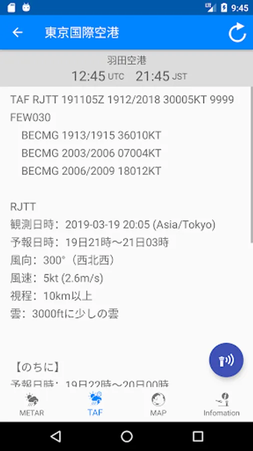 「空見さん」は日本各地にある飛行場のMETARやTAFを取得して、日本語に解釈した文章とともに表示するアプリです。飛行場の概要やマップでの表示もできます。