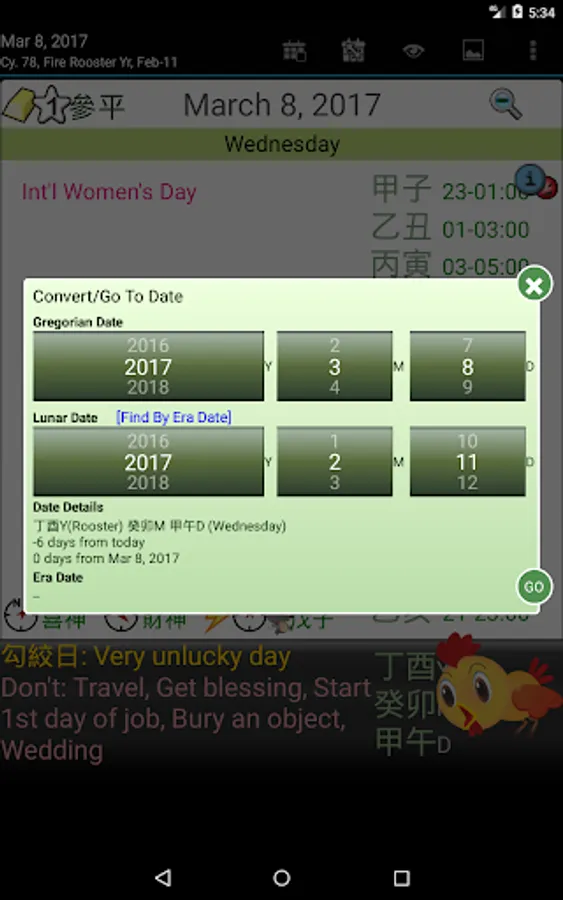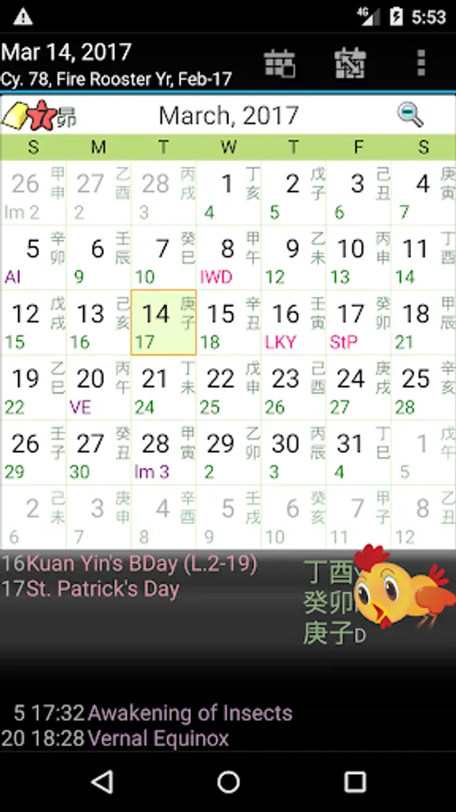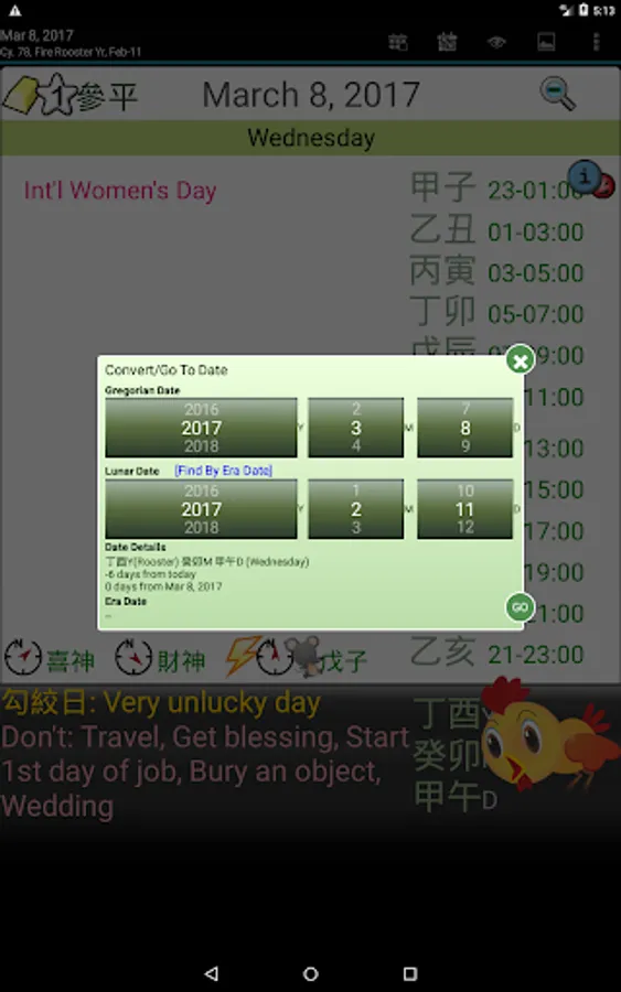 Easy-to-use Chinese calendar(萬年曆) featuring: