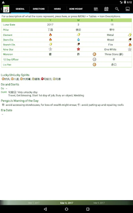 - Five elements, nine star, lunar mansion, 12 day officer, liu yao