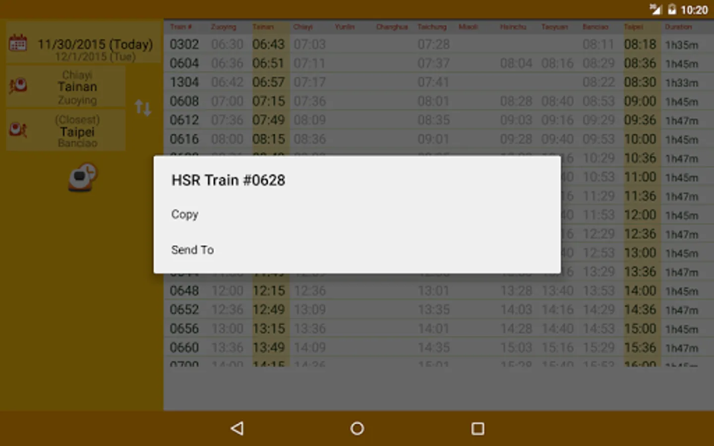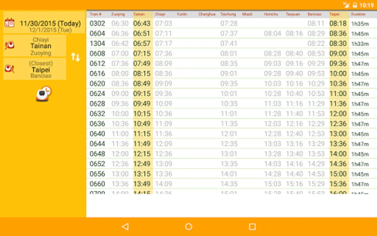 Chinsoft THSR Timetable is the fast way to look up Taiwan High Speed Rail (台灣高鐵) timetables on Android: