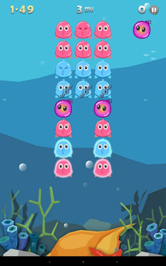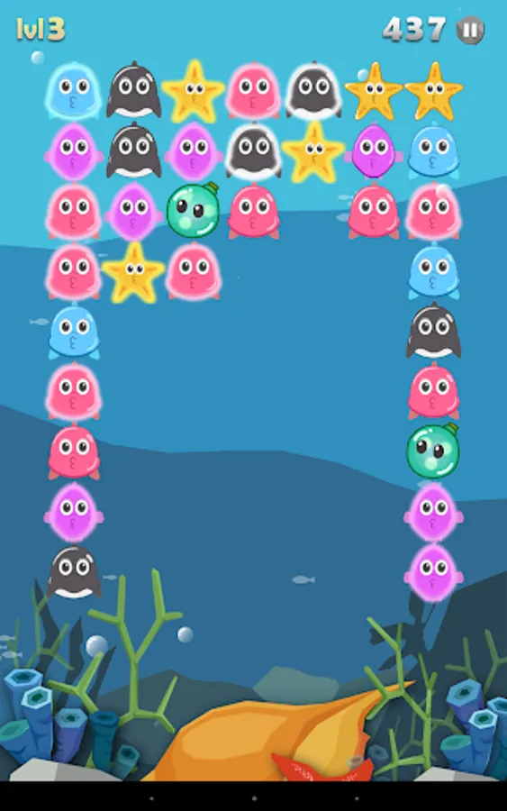 ↝ Create combos by making a move that saves causes a cascade of different fishes to be saved.