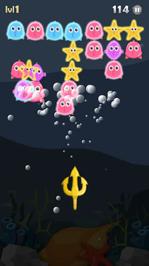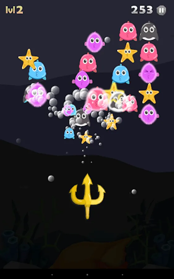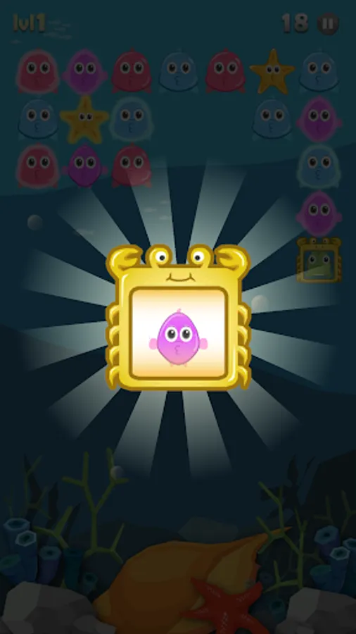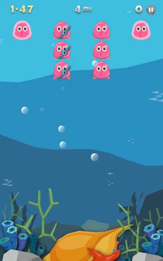 ↝ Score by grouping a glowing fish with two of more fishes of the type.