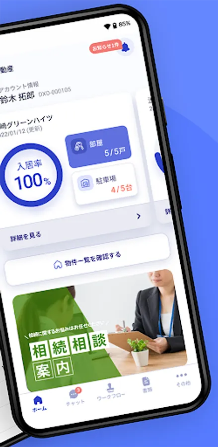 The GMO Rental DX Owner App is a smartphone app that facilitates communication between the owner and the management company.