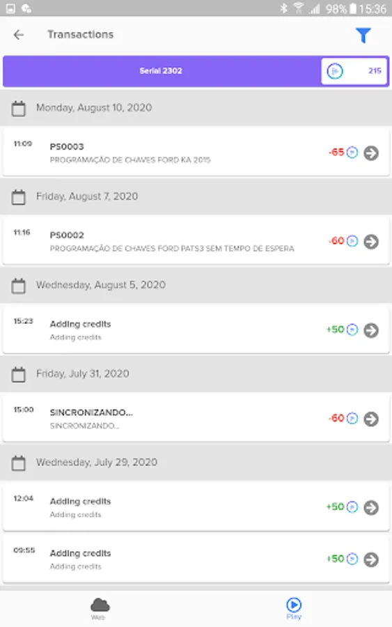 Buying credits online: buy credits alone directly from the application with complete security;