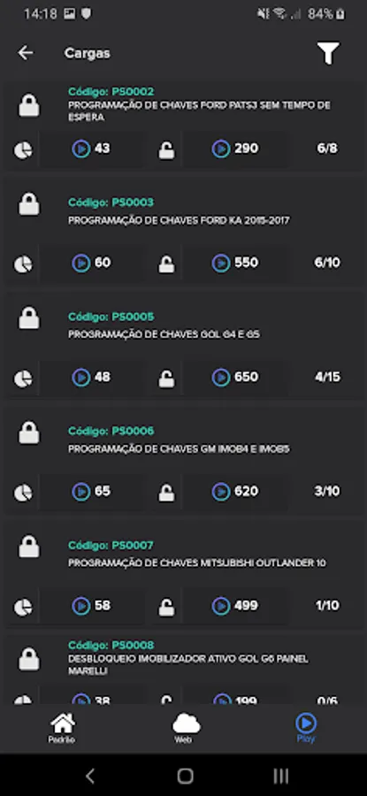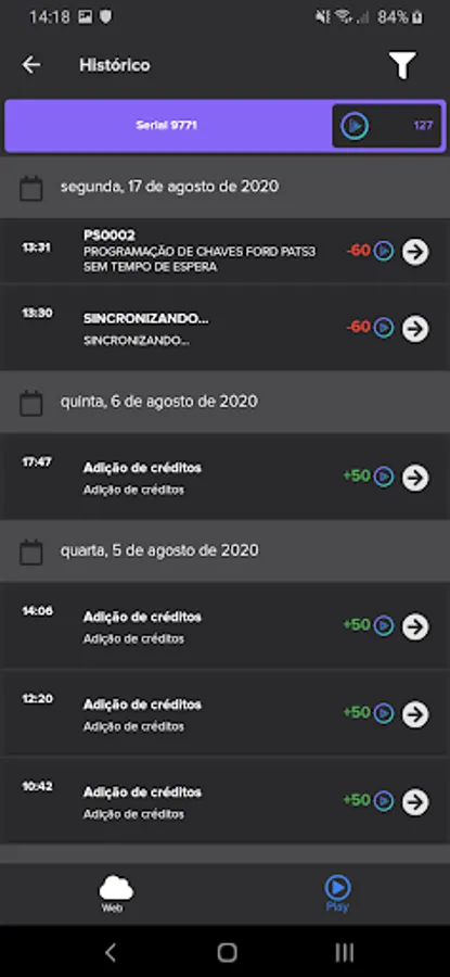 Load relation: full visibility of the functions present in the equipment and how many times they were executed in the web mode and in the play mode;