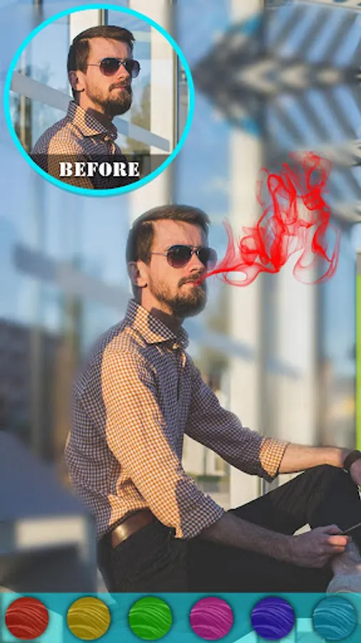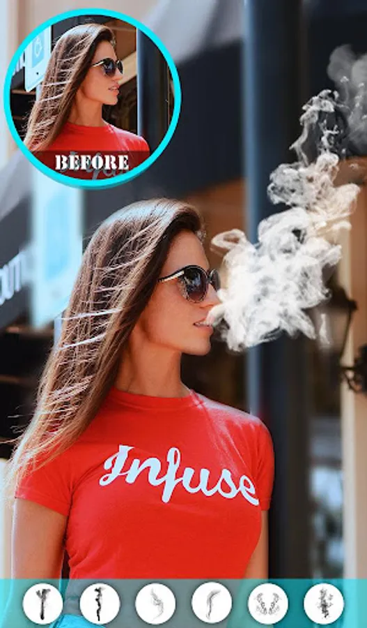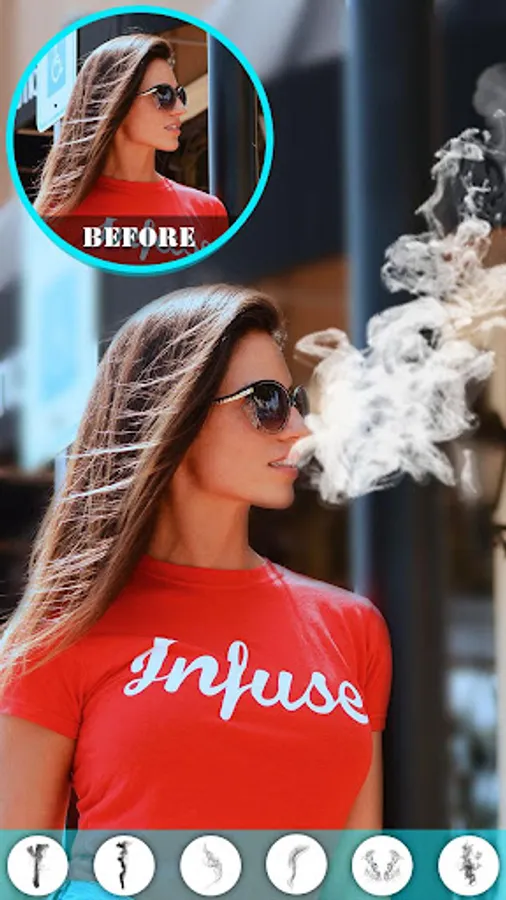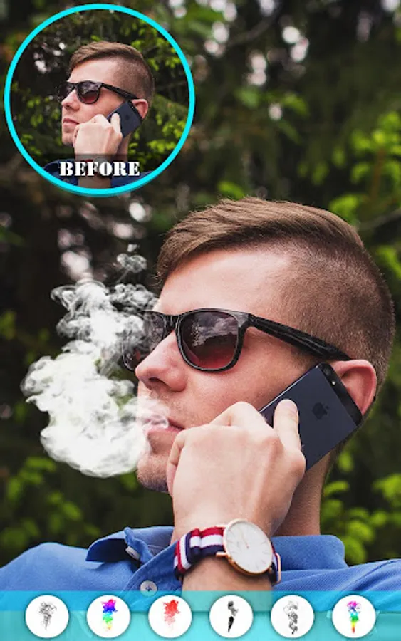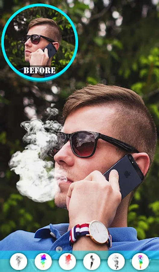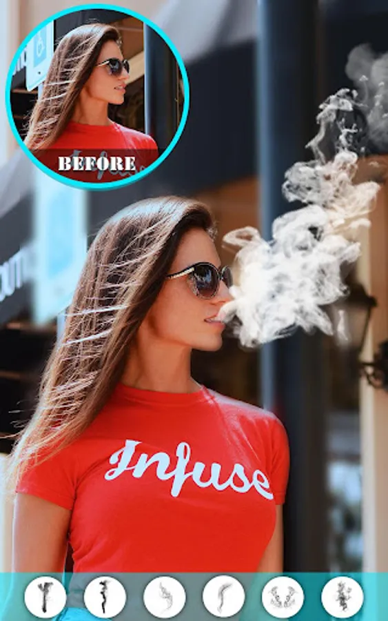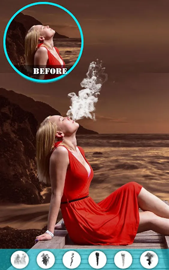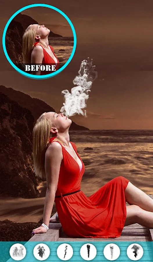 Download this smoking photo editor / Photo effects smoke app and select a pic from your phone gallery to apply simple smoke effects, 3d smoke effect, fake smoke effect, artistic smoke effects, colored smoke effects as well as rainbow smoke effects.