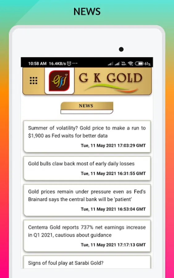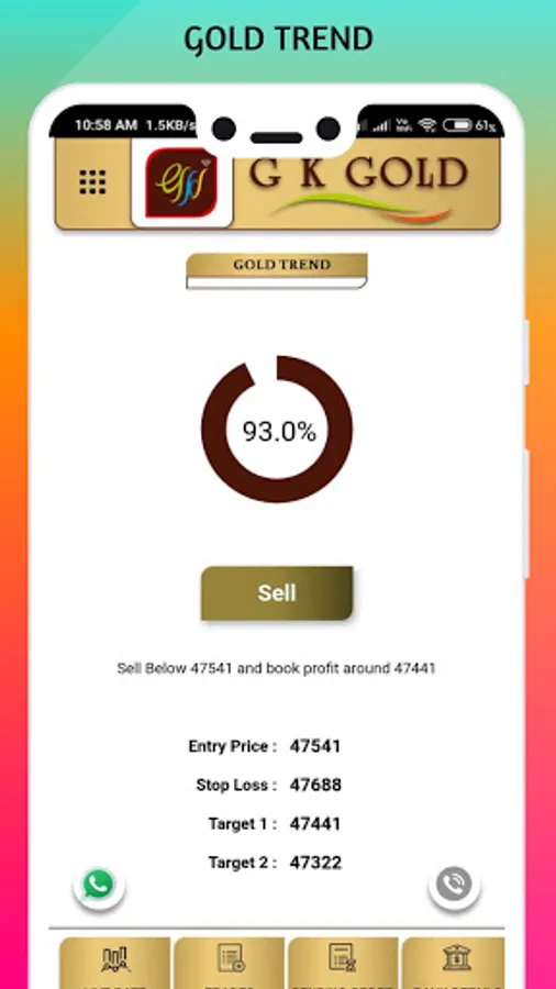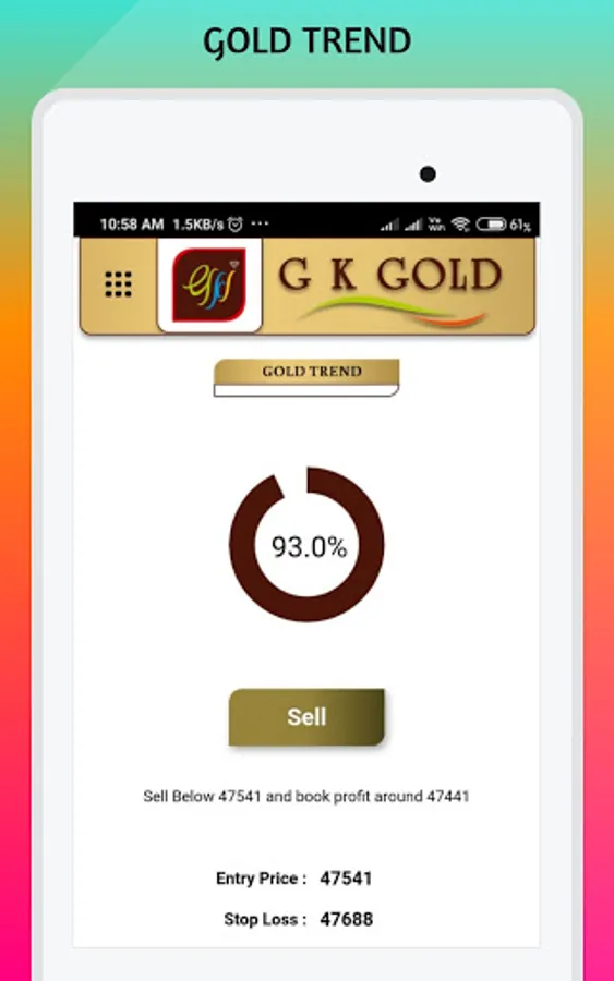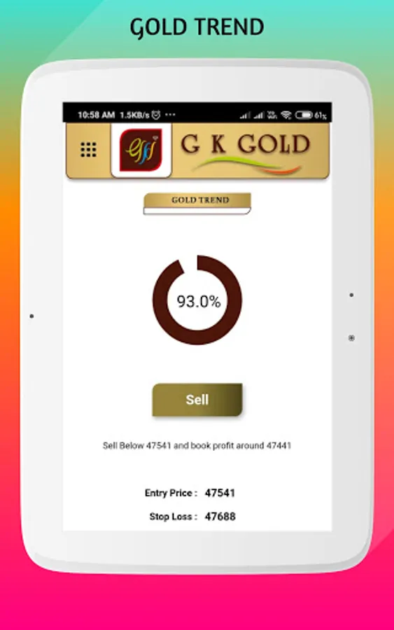 The app has a special feature of predicting GOLD TREND using various analysis tools.