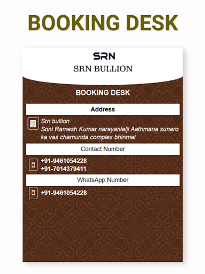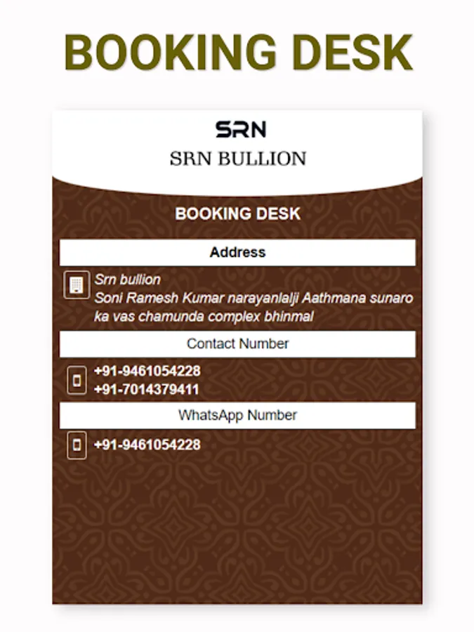 SRN Bullion is a leading bullion dealer in Bhinmal with rich experience in the bullion market.