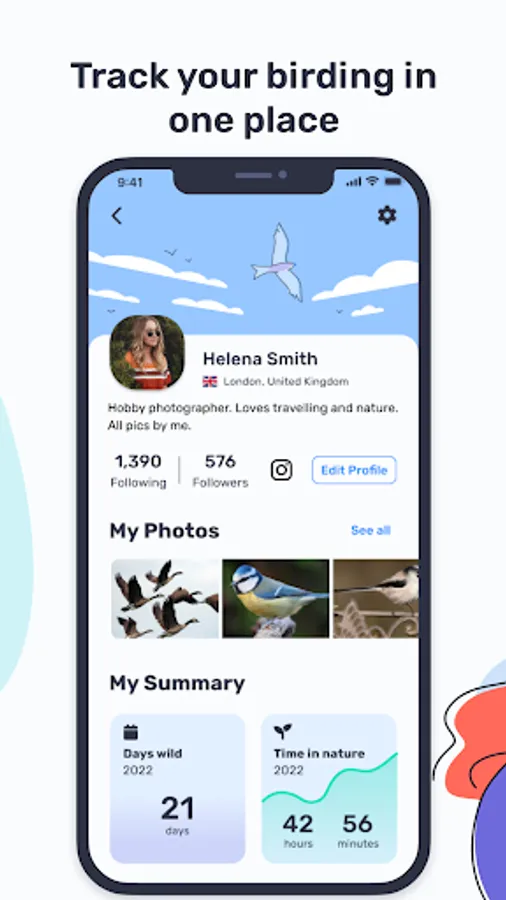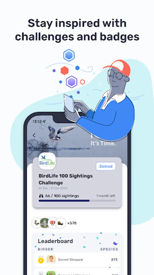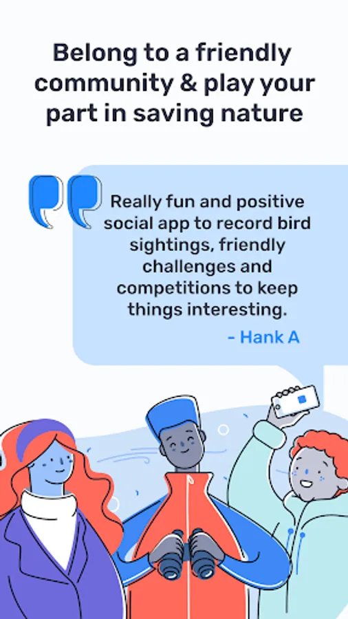 Join challenges and make new friends - it’s free! Feel less stressed. Don’t know a bird? Use the community as a HI (Human Intelligence) bird identifier - grow your birdwatching & bird knowledge faster. Help protect nature by turning birding into a fun adventure. All with the help of a free bird app. Cool, right?