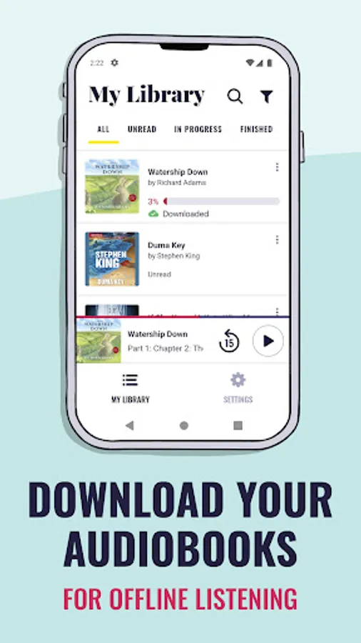 • Ability to stream or download audiobooks and enjoy offline listening in the app
