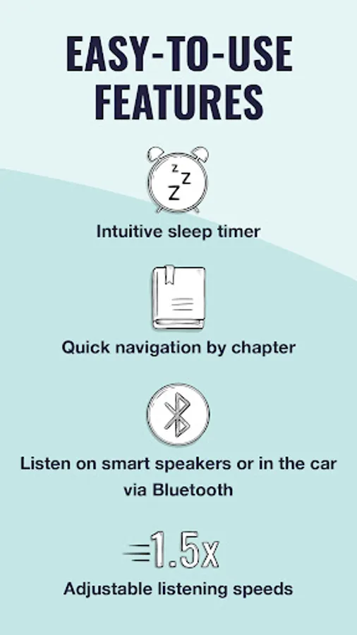 • Ability to listen to audiobooks on smart speakers or in the car via Bluetooth