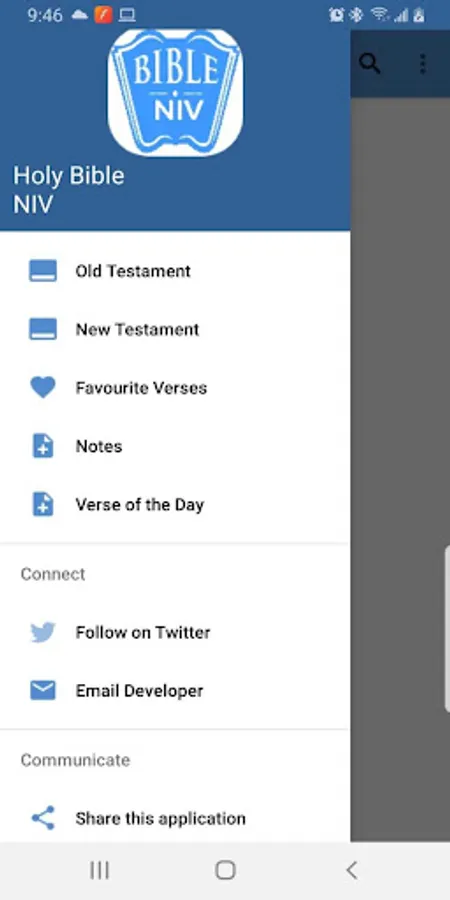 Ability to share bible verses with friends and family via many social applications on the instance.