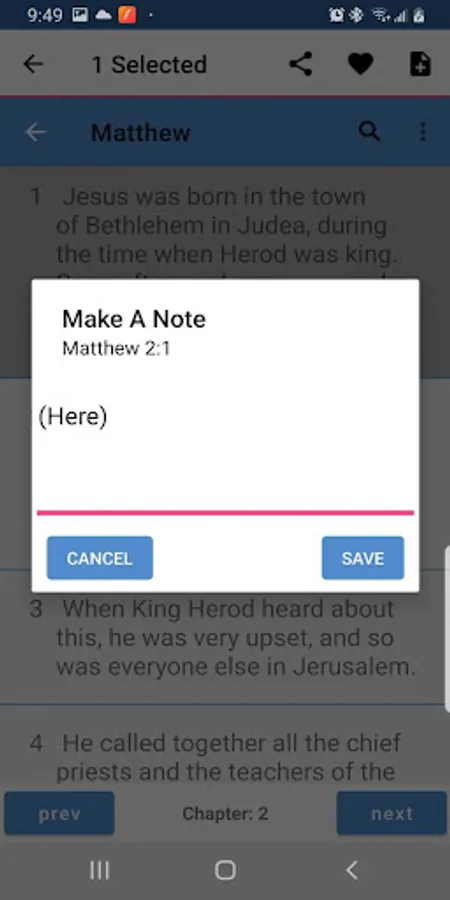 Ability to select your favorite verse/s and save them for later reading or referral.