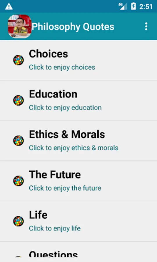 Some of these questions might never have answers but we always have them. This application sums up all scenarios of life and helps you ask many philosophical questions. While some quotes seem to offer insights into the topic, it is your sole responsibility on how to interpret the idea.
