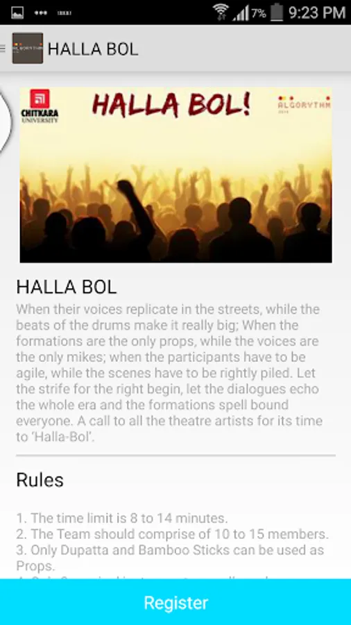 Algorythm offers events for everyone.So whether you are a musician, a dancer, an actor, a painter or a public speaker, we have an event for you to come and showcase your talent! A thrilling rock battle and a mesmerizing star night will surely make Algorythm2k14-an amalgamation of diversity even more memorable for you!
