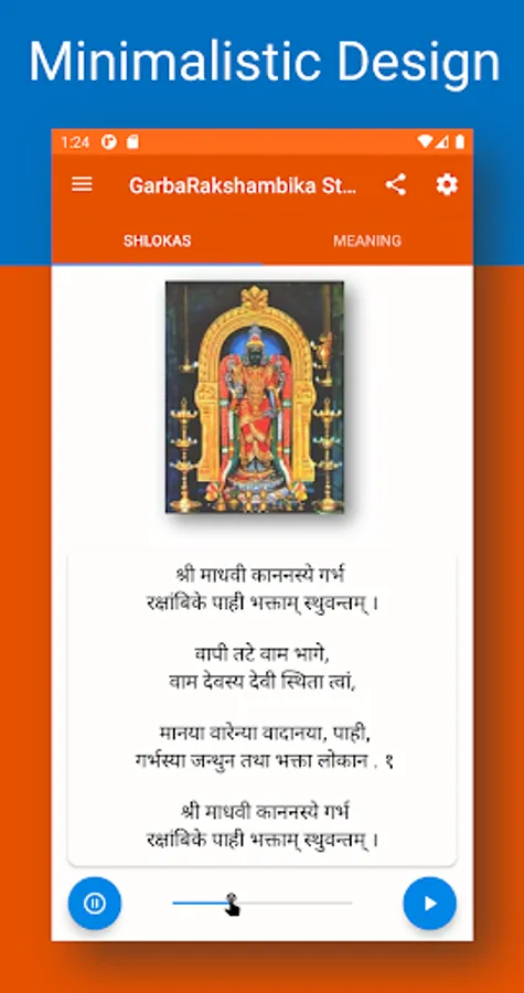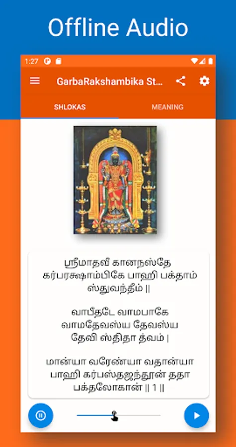 🚀 The audio of Garbha Rakshambika Stotram can be paused and resumed without any glitch. And the audio can also run on the background if you want to use your phone for some other activity simultaneously.