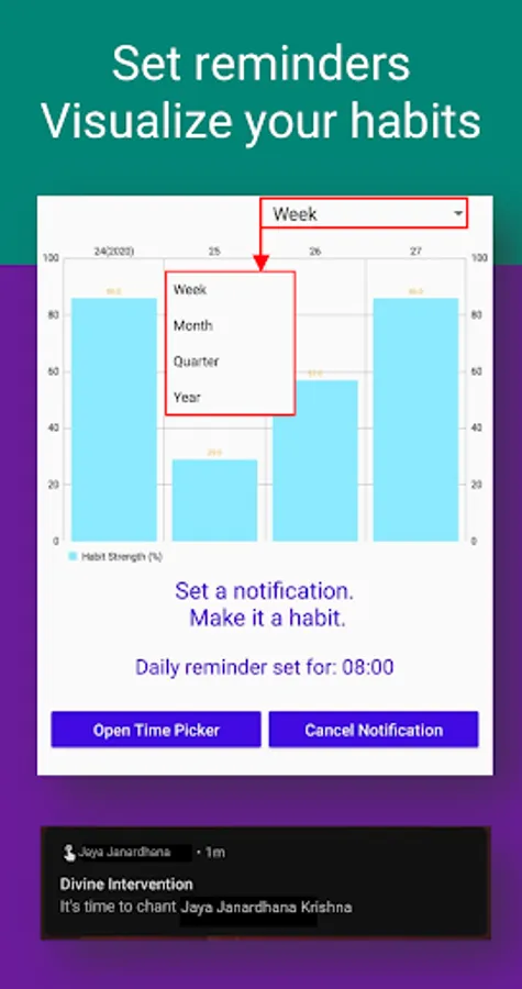 🚀 You can set reminders and monitor your daily chanting habits too. The habit chart motivates you to not break the chain and help you chant the shlokas without fail.