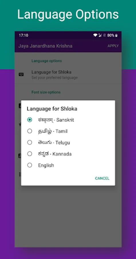 🚀 Jaya Janardhana Krishna song lyrics are presented in 5 different languages - Hindi (Sanskrit), Tamil, Telugu, Kannada, and English. App will remember your preferences.