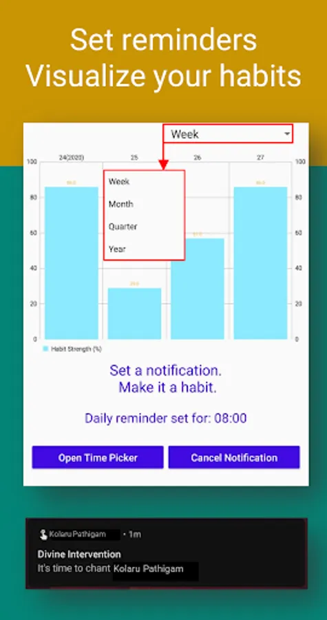 You can set reminders and monitor your daily chanting habits too. The habit chart motivates you to not break the chain and help you chant the shlokas without fail.