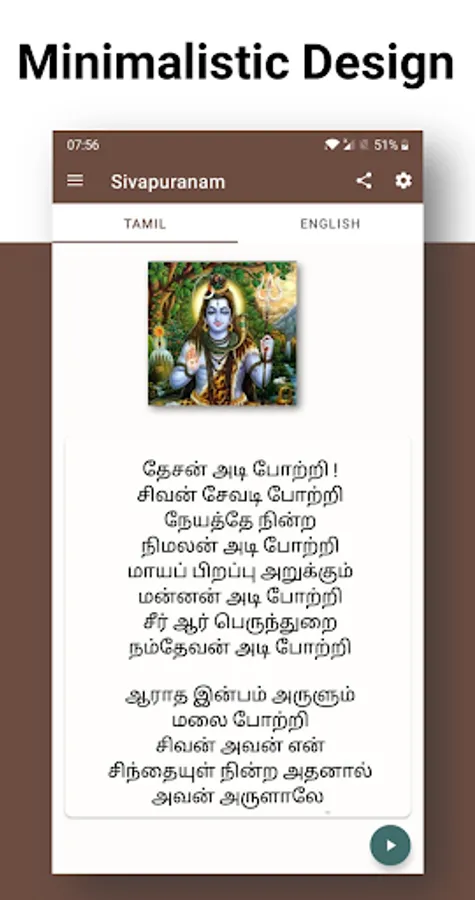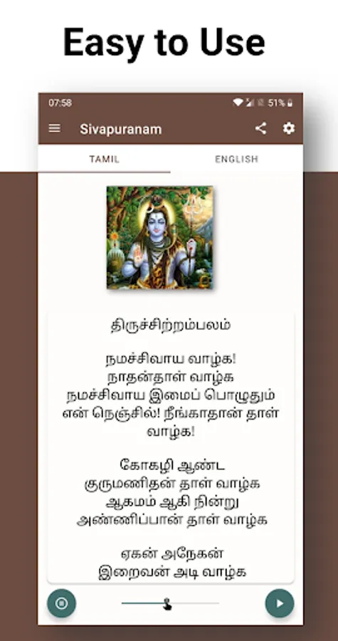 Read and listen to the powerful Sivapuranam through this app without any ads and disturbances.