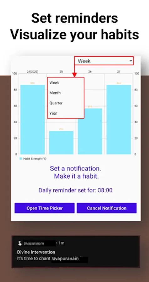 🚀 You can set reminders and monitor your daily chanting habits too. The habit chart motivates you to not break the chain and help you chant the shlokas without fail.
