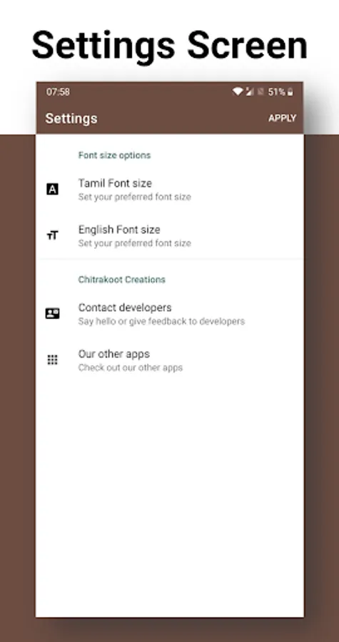 🚀 The language and font preference for the lyrics need not be specified every time you open the app. Once set, the app will remember your preferences, making it a hassle free experience.