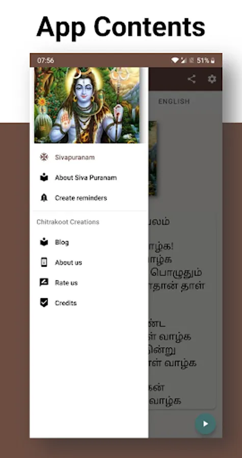 Enjoy the Siva puranam app and please do let us know if you have any comments or suggestions. If you liked the app, please do give us a positive rating in the play store.