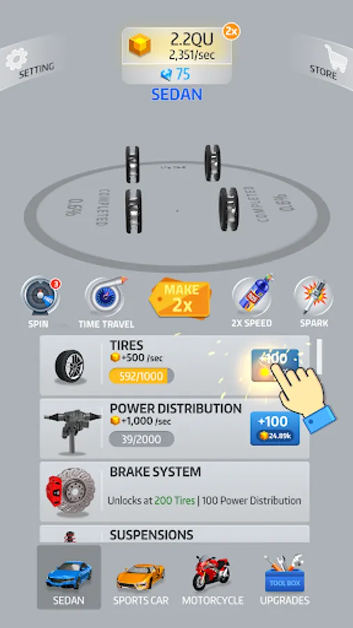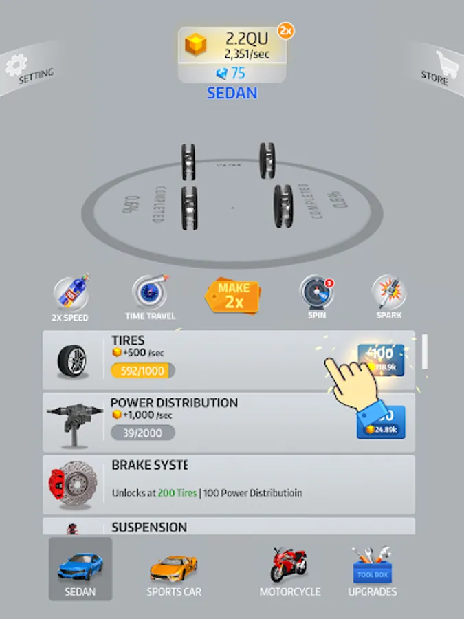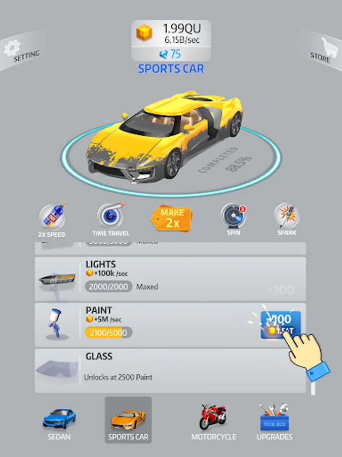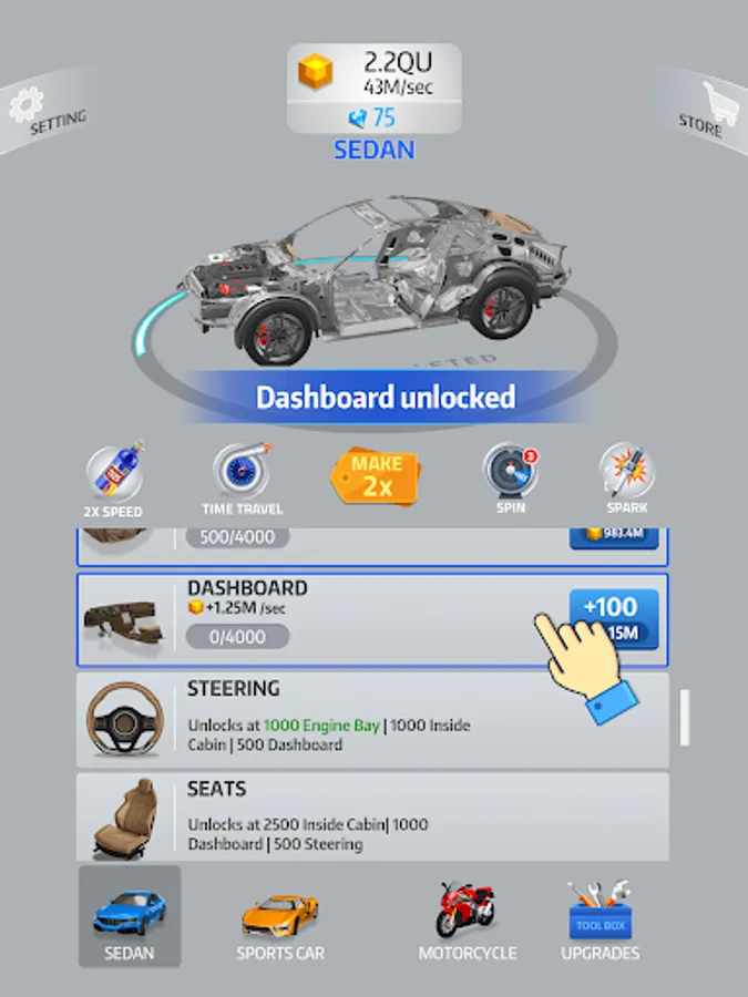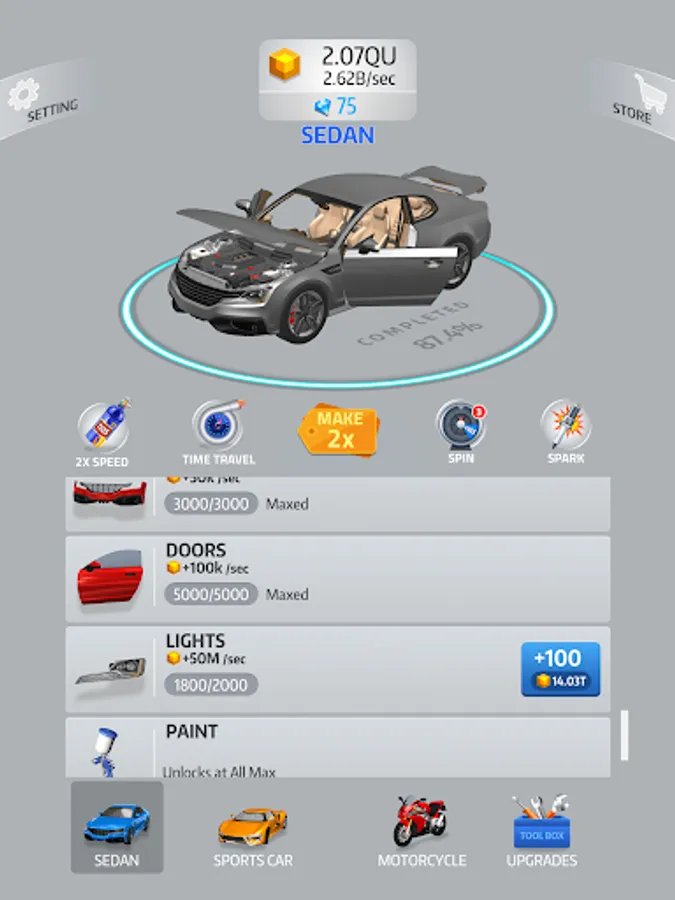 Even when you aren’t playing, enjoy seeing your car’s progression! The closer you are to the finish, the more money you get to unlock special content. Watch your projects evolve right in front of your eyes.