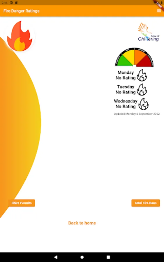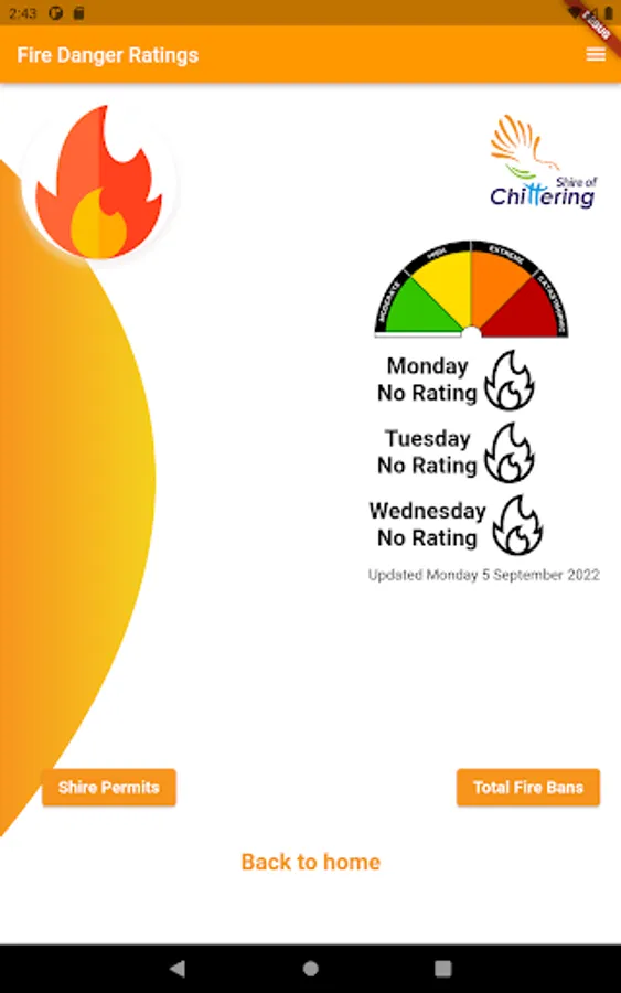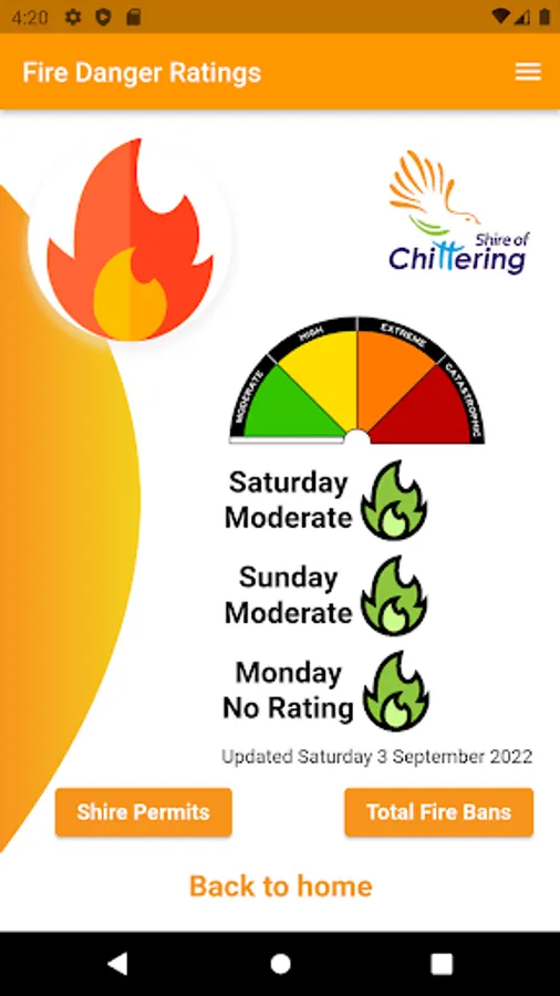 Shire of Chittering residents can see the day's fire danger ratings and submit problem reports to the Shire.