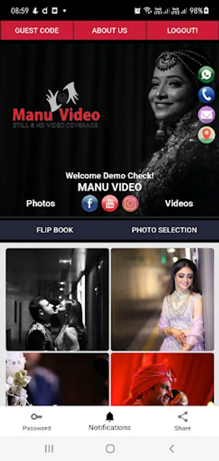 Manu Video And Films App Provides Excellent Photography And Videography Services. Manu Video And Films App is designed for their customers to log in and view their events and flipbooks and do photo selection and photo search using an AI-powered face recognition service.