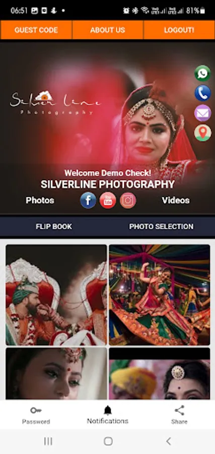 Silverline Photography App Provides All Types Of Event Photography And Videography Services. Silverline Photography App is designed for their customers to log in and view their events and flipbooks and do photo selection and photo search using an AI-powered face recognition service.