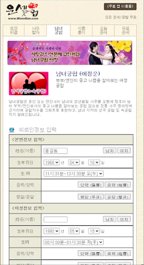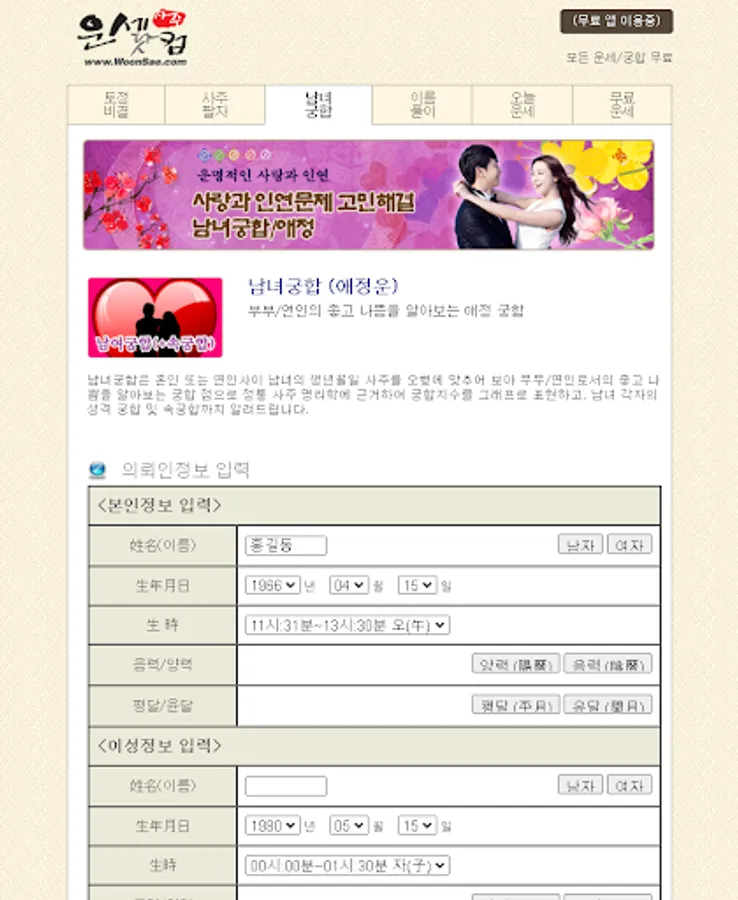 Gender compatibility is a compatibility point that identifies good and bad as a couple/lover by matching the four keys of the date of birth of a man and a woman between marriage or lovers according to the five elements. Please note.