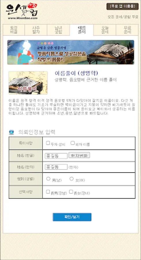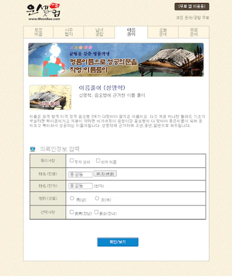 -Name interpretation (Songmyunghak): Name resolution based on phonology, umm and five elements