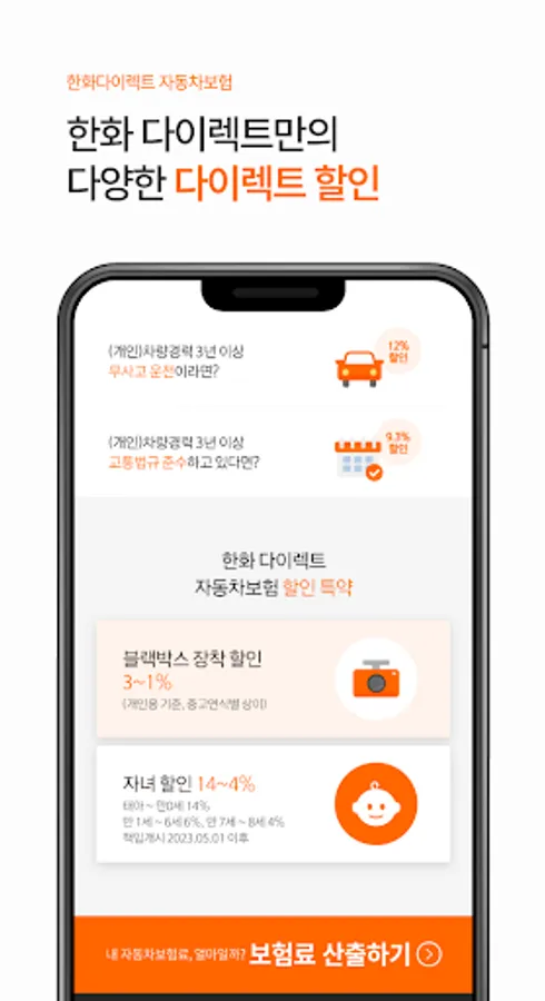 Hanwha Direct Auto Insurance Hanwha General Insurance Mobile App Receive special contract discounts and sign up for auto insurance at a low price! With the mobile app, you can sign up quickly and easily anytime, anywhere. Calculate your insurance premium right now!