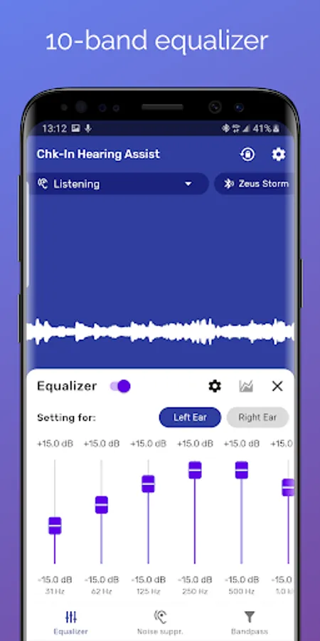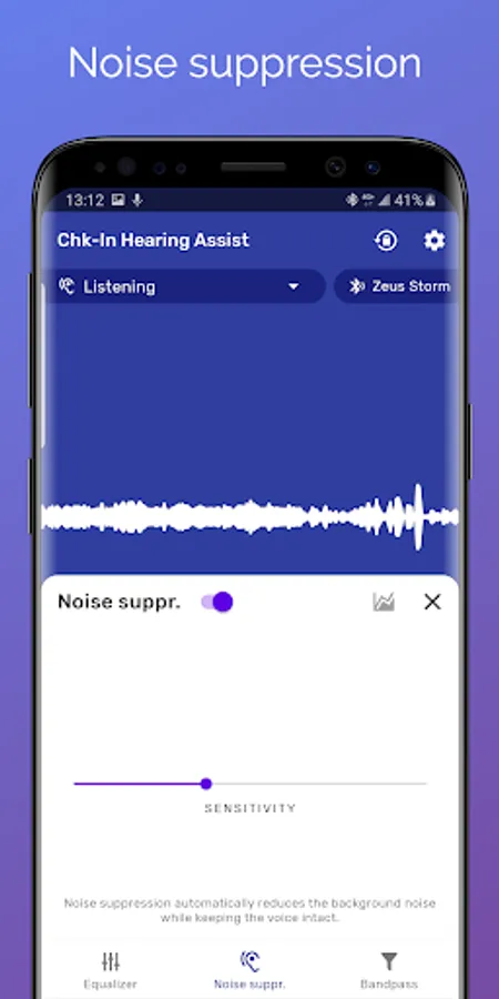 Chk-In Hearing Assist turns your Android device into a full-fledged voice enhancement solution for the hearing challenged individual. Our mission is to provide those who does not need a dedicated hearing aid with an affordable and flexible solution of choosing their own hearing device such as off-the-shelf wired or bluetooth headphones. But most importantly, since every person's hearing ability is unique, Chk-In Hearing Assist adapts to your hearing needs and provides the best audio experience by placing the Control in your Hands so you can control the sound quality as the environment changes.