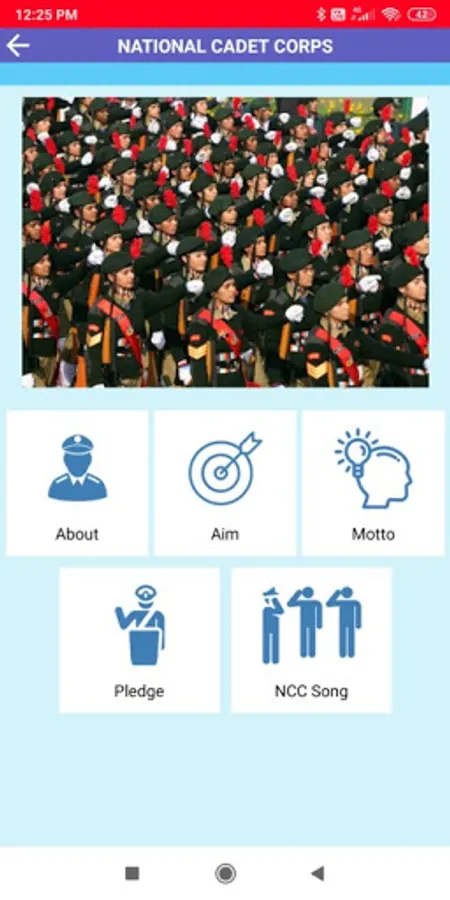 This app will help the NCC cadets to access NCC training materials on their mobile. The updated training materials for Junior and Senior cadets includes:
