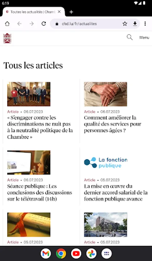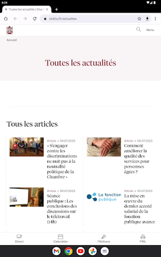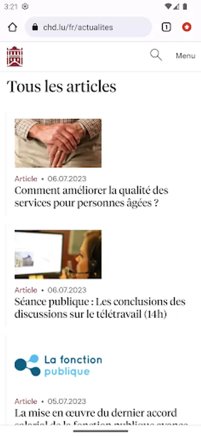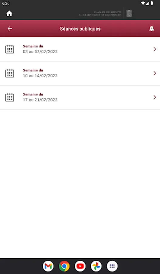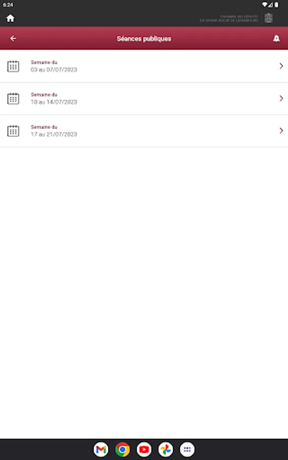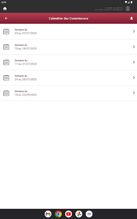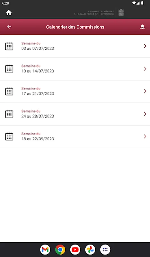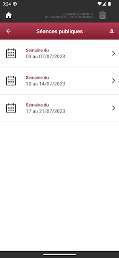 It gives access to the calendar of committee meetings and public hearings. You can also consult the President's agenda and the latest news on the first institution of the Grand Duchy of Luxembourg.