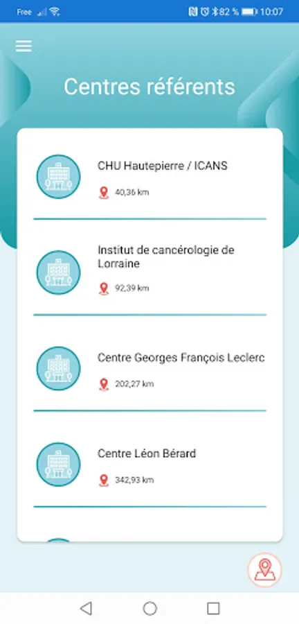 Thanks to the geolocation of your phone, the application offers you the referral center closest to you with its contact details. You also have access at all times to all the different national centers.