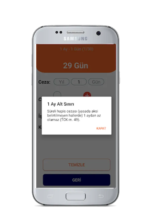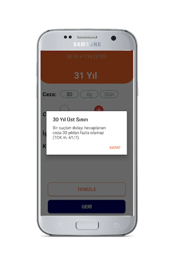 ✔ The Penal Calculation application calculates the prison sentences in the criminal proceedings in accordance with the rules and procedures. In addition, TCK m. Since the term penalty calculated in accordance with 61/7 cannot be more than 30 years, TCK Art. 49 in accordance with the warning can not be less than 1 month in this case gives the user. Thus, our application aims to eliminate human error in criminal account and control.