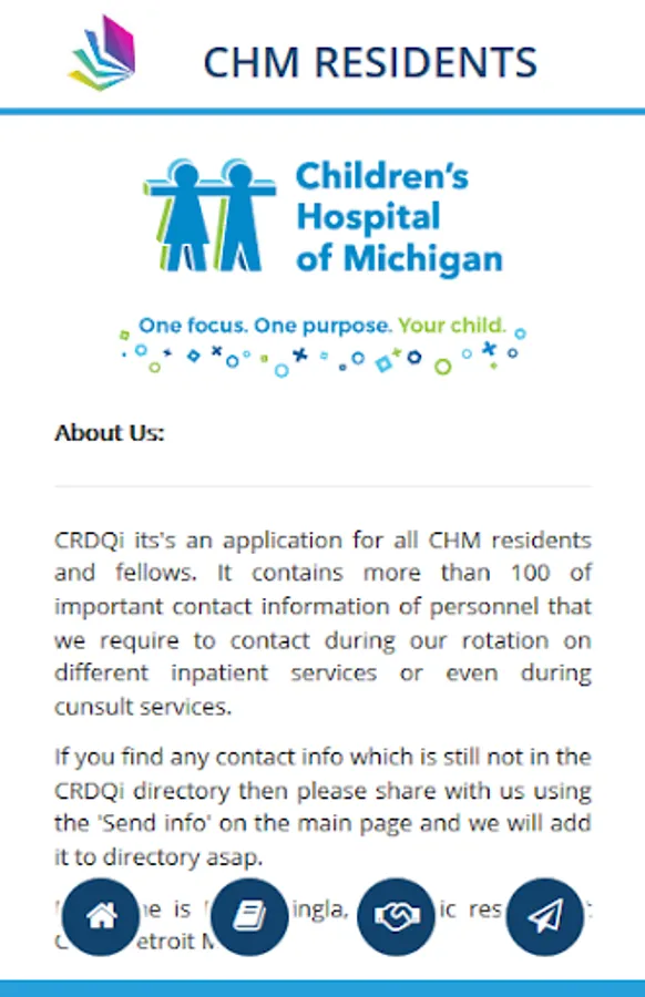 CRDQi its's an application for all CHM residents and fellows. It contains more than 100 of important contact information of personnel that we require to contact during our rotation on different inpatient services or even during cunsult services.