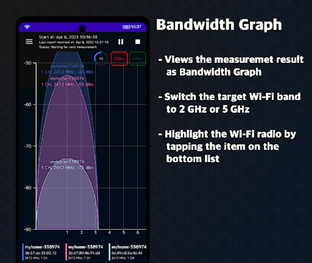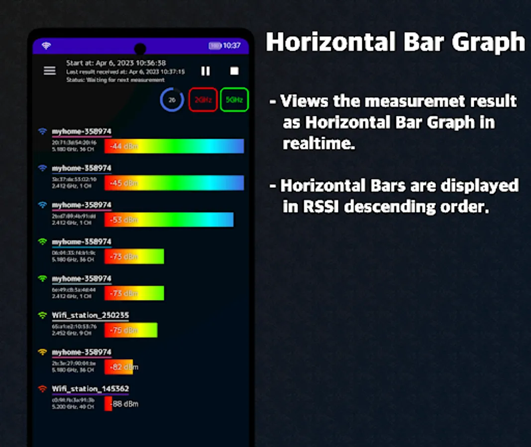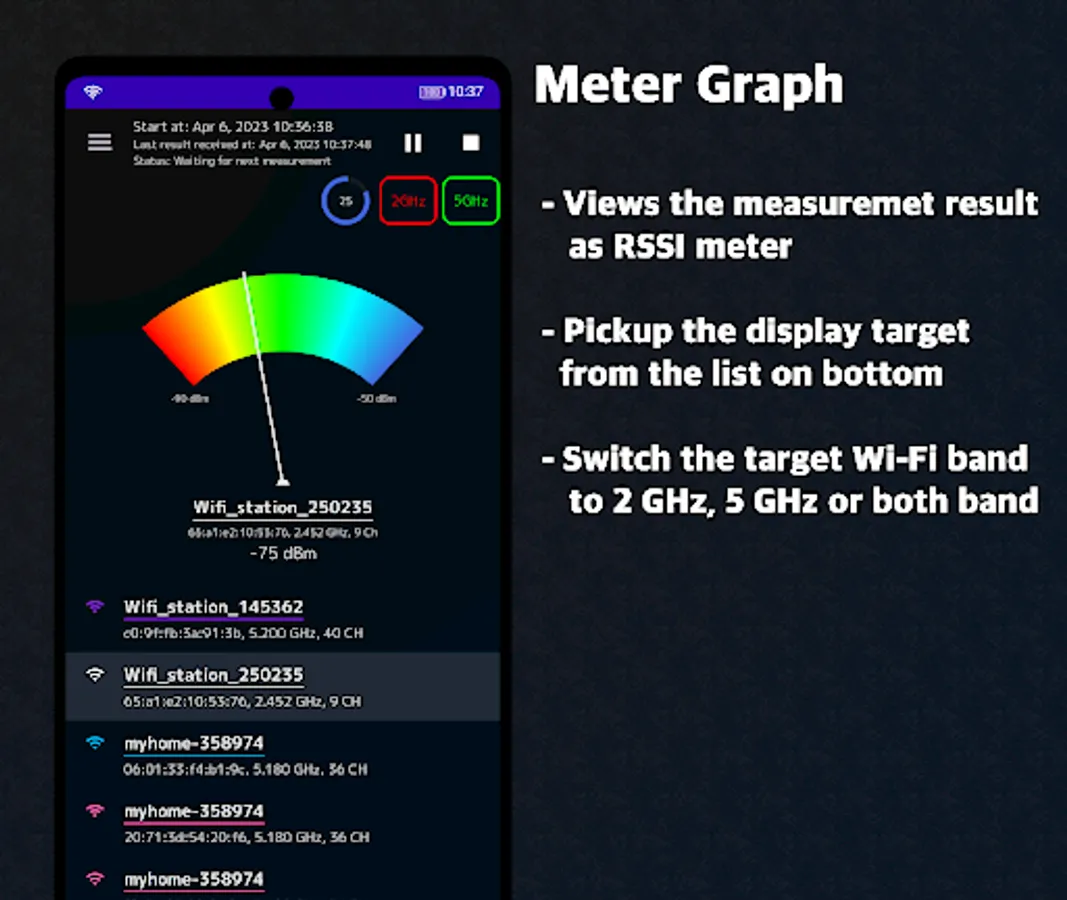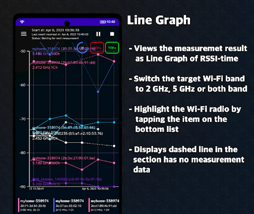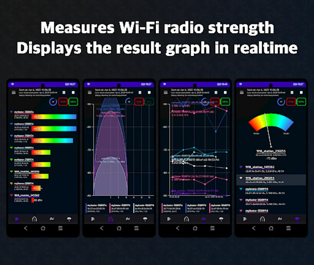 - Measuring the strength of Wi-Fi radio and shows the results as graphs