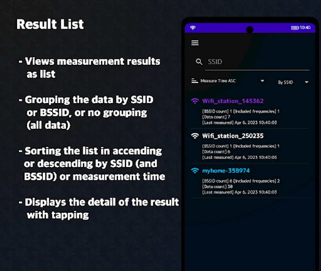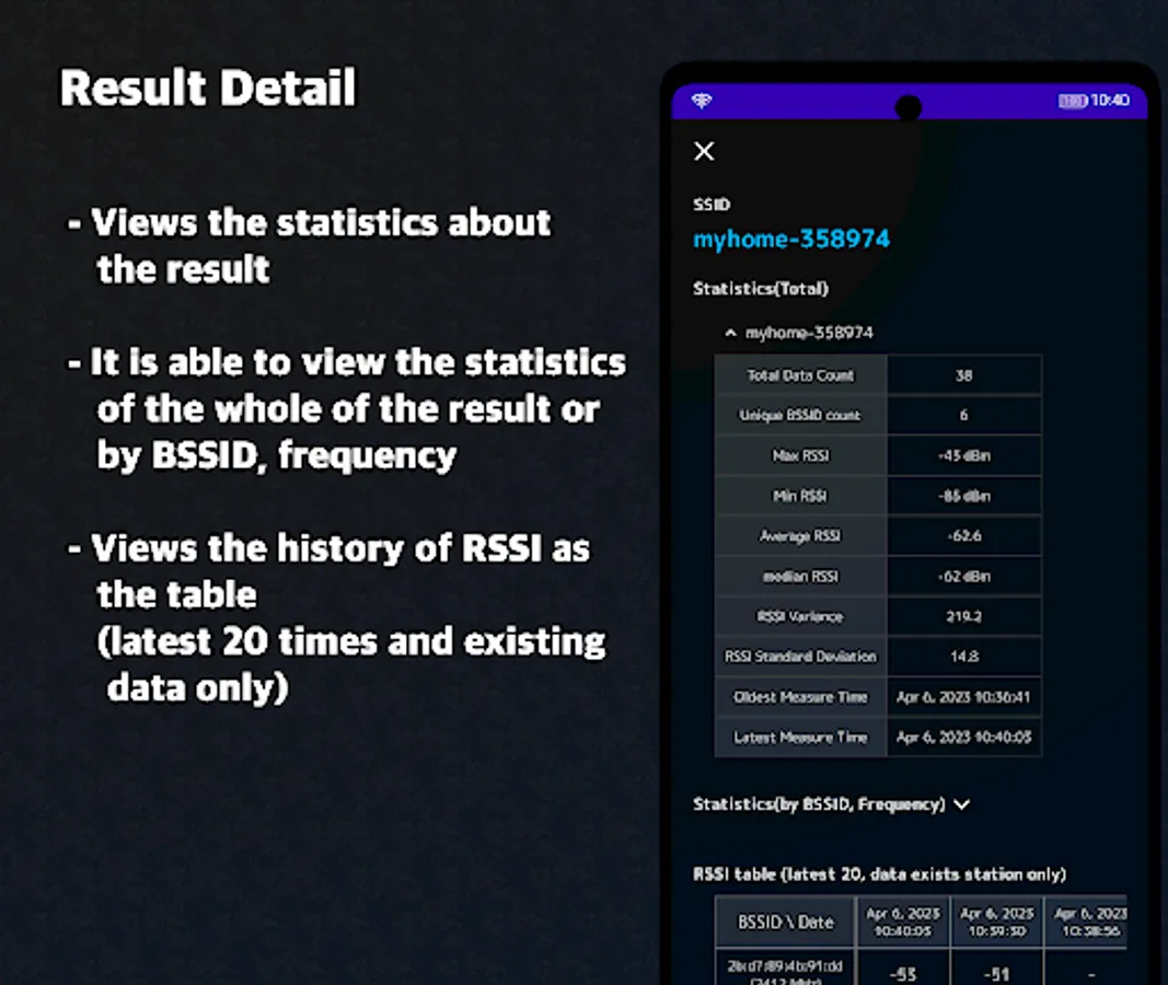 - Due to the specification of Android, the scanning of Wi-Fi is enables four times in a 2-minute period. Therefore, this app has an at least 30 seconds interval for each measurement.