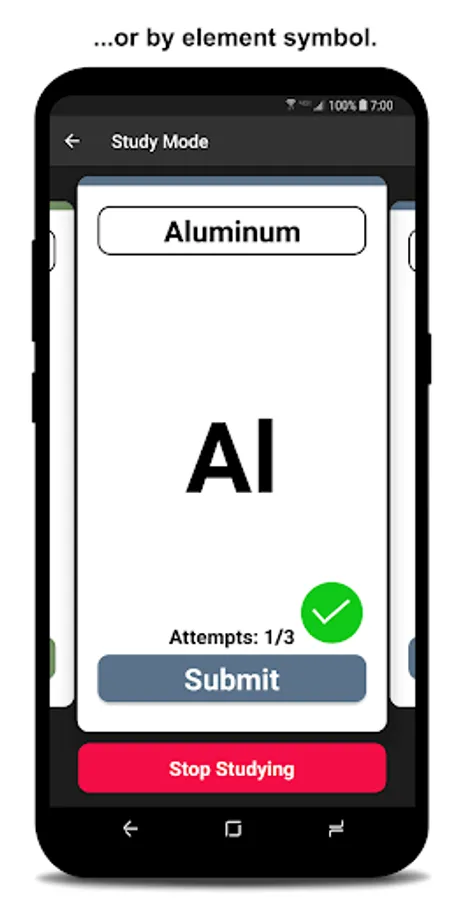 All new study mode allows for easy studying of elements by atomic number and element symbol. Then a detailed study report is given when you're done studying!