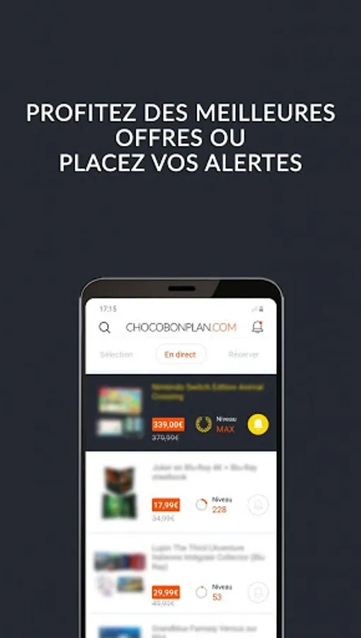 The ChocoBonPlan mobile application offers you the best deals on consoles, video games, Blu Rays (Films, Series, Animated), collector and limited editions as well as on many derivative products.