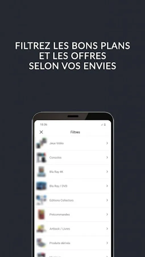 - Your Notifications: receive push notifications only on the products you have selected. You can also receive only Super Good Deals or a selection of good consoles, games, blu ray, derivative products ... Simply manage your push notifications from "My Notifications", "My offers" or "My pre-orders".