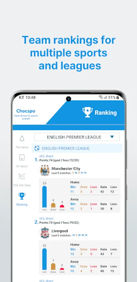 Now you can use ChocSpo for an extra sharp AI-based edge! Also, ChocSpo allows you to choose the relative importance of factors such as home field advantage, last match scores, key players etc. based on your own experience.