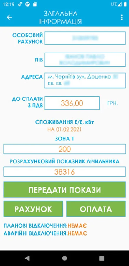 The following functions are available to the household consumer of E-Svitlo: