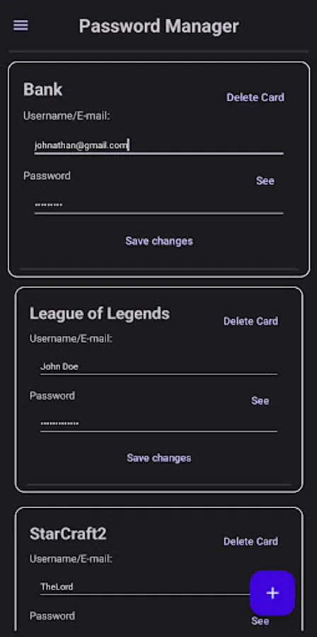 Passwords Manager is an app that allows you to write down important and valuable personal information aka Usernames, E-mails and Passwords.